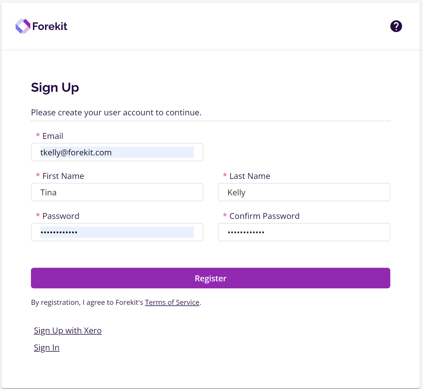 If you want to sign up, please review the Terms of Service, fill in the required information, and then click the ‘Register’ button.